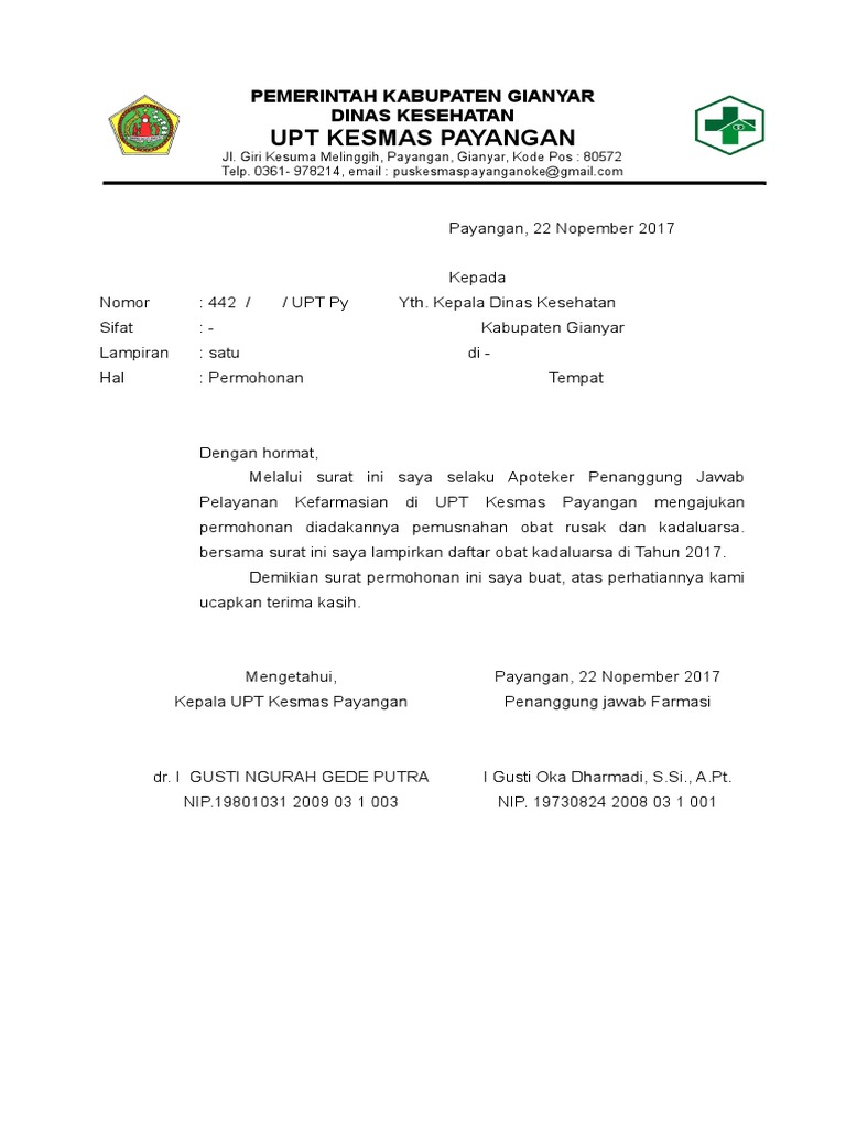 Ngrejo, 18 agustus 2014 kepala sekolah sri suciati, s.pd. Text of contoh surat permohonan obat. Jika hendak membuat surat ini, tentu anda harus memakai bahasa yang sopan sesuai ejaan yang benar serta menyampaikan maksud dan tujuan secara singkat dan jelas. Salah satu contoh adalah ketika anda ingin meminta maaf kepada guru ataupun kepada teman/sahabat. Contoh surat permohonan berbagai keperluan yang benar. Permohonan ini kami buat untuk dapat dipergunakan sebagaimana mestinya. Kepmenkes 1331th 2002 pedagang eceran obat. Adapun surat permohonan sendiri ada yang bersifat resmi atau pun sebaliknya tidak resmi. Jika anda sedang mencari informasi terkait contoh surat permohonan. Karena surat permohonan ini bisa gunakan dalam berbagai macam bidang. Sebagai seseorang yang hidup bersama di dalam sebuah masyarakat tentu akan dihadapkan pada berbagai masalah yang melibatkan individu dengan orang lain. Surat permohonan sendiri dapat bersifat resmi atau pun tidak resmi. Pemerintah kabupaten blitar dinas pendidikan uptd bakung sd negeri sidomulyo 02 permohonan ini kami buat untuk dapat dipergunakan sebagaimana mestinya.